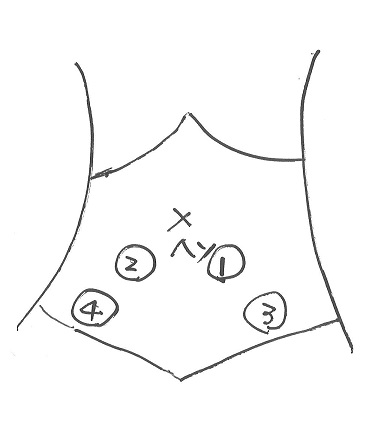 ①臍より斜め左下なのか、②斜め右下なのか?