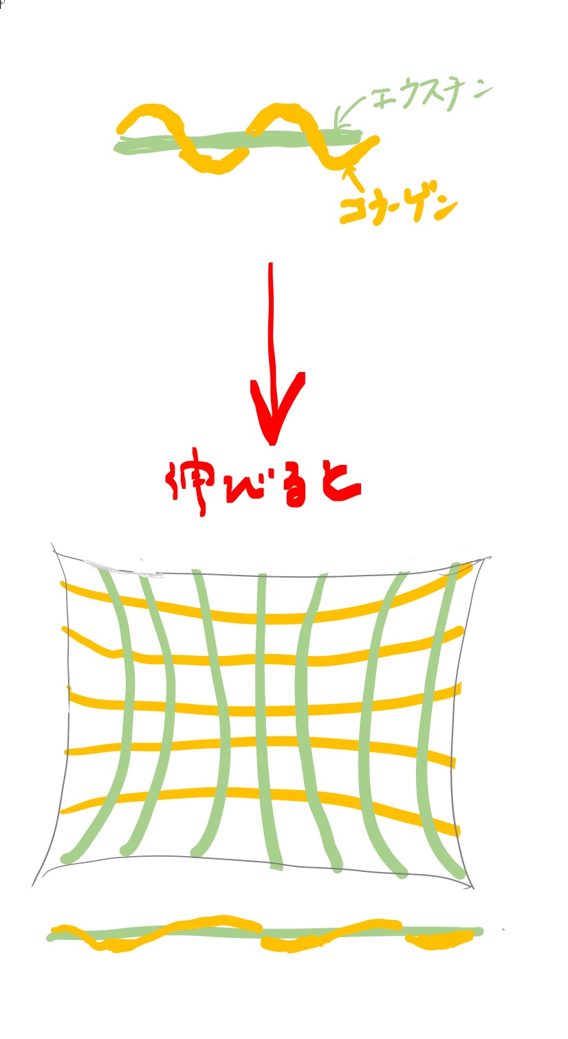 エラスチンとコラーゲンが、縦横に織りなして膜を作っています。