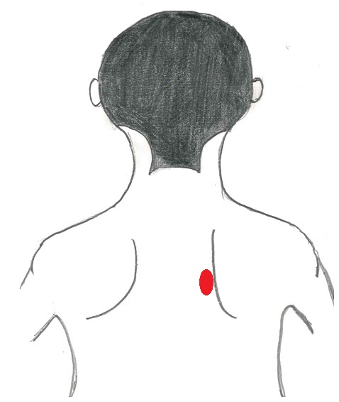右肩甲骨の内側。
