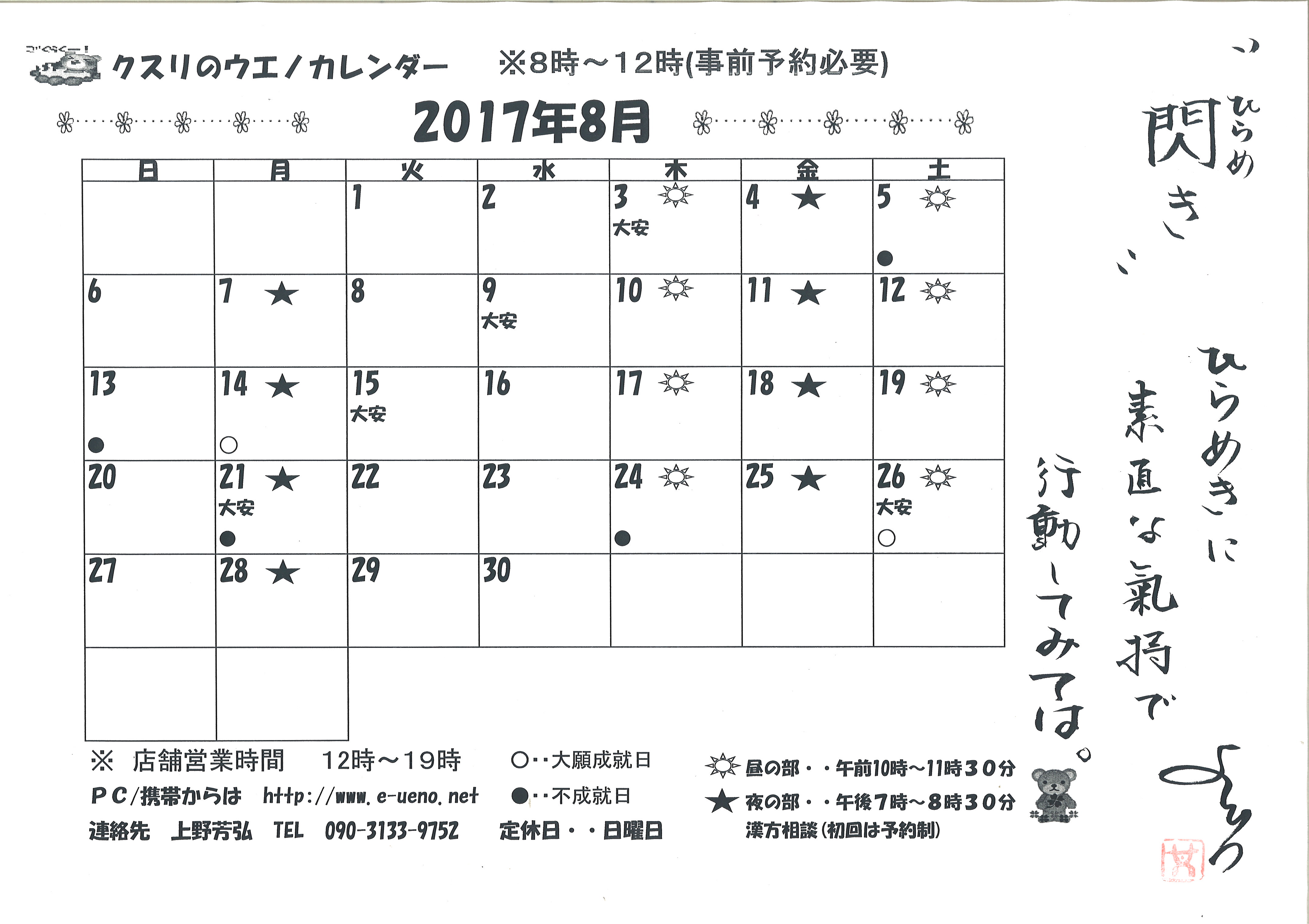 2017年度8月 お知らせ・・・
