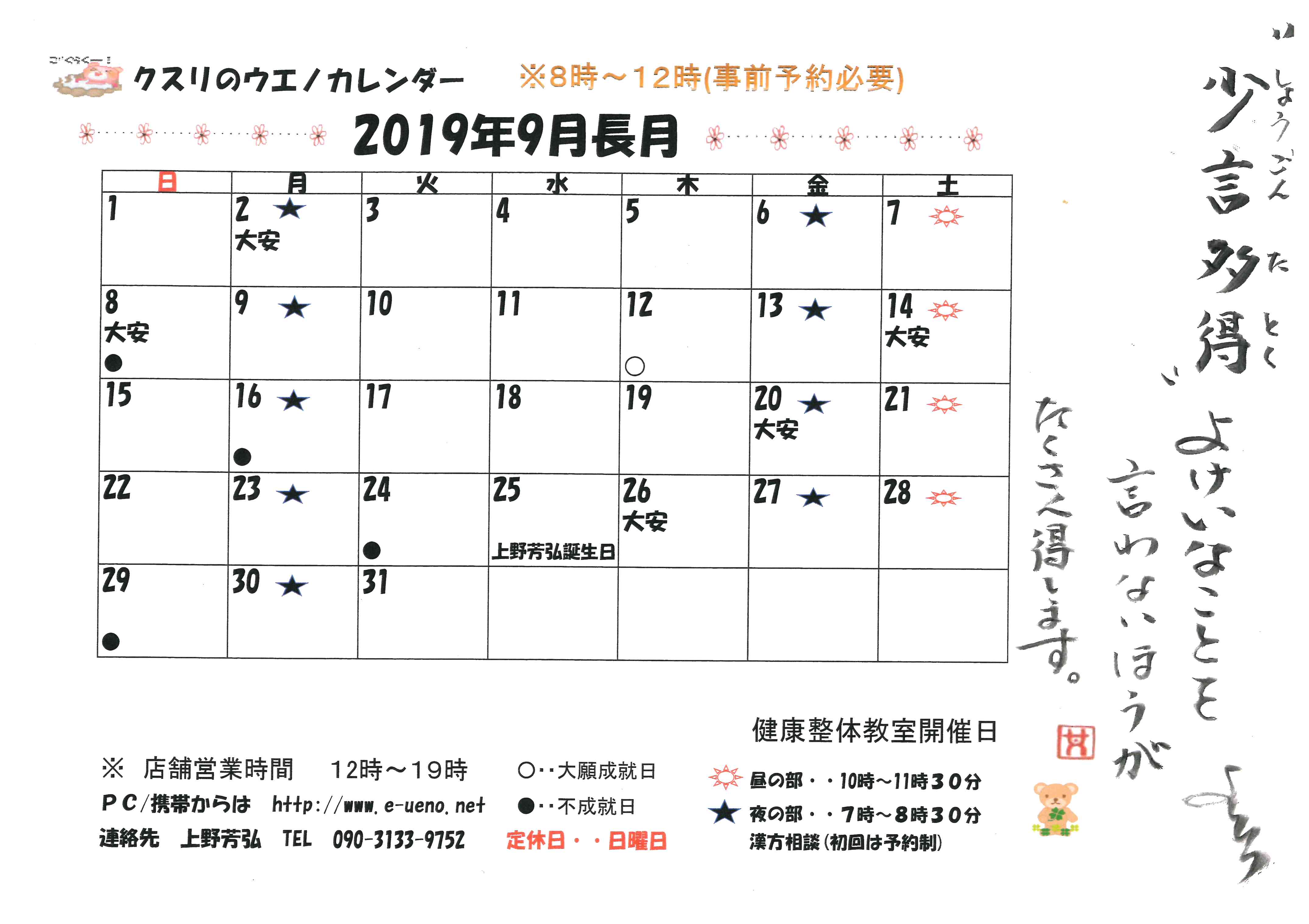 2019年9月 お知らせ・・・