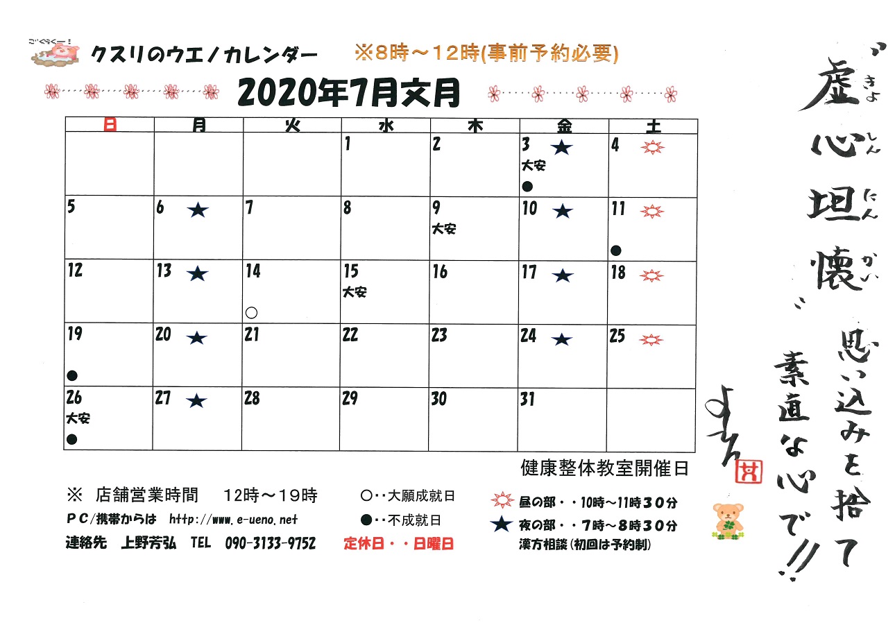 2020年7月 お知らせ