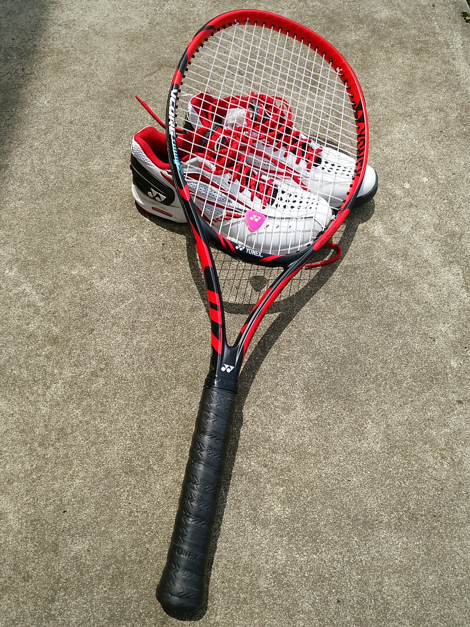 新しいラケットと靴を買ったので使ってみたくてしかたなかったのです。